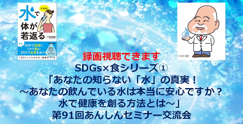 第91回セミナー「SDGs×食シリーズ① あなたの知らない『水』の真実 ~あなたの飲んでいる水は本当に安心ですか?水で健康を創る方法とは~」
