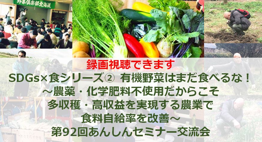 第92回セミナー「SDGs×食シリーズ② 有機野菜はまだ食べるな!~農薬・化学肥料不使用だからこそ多収穫・高収益を実現する農業で食料自給率を改善~」